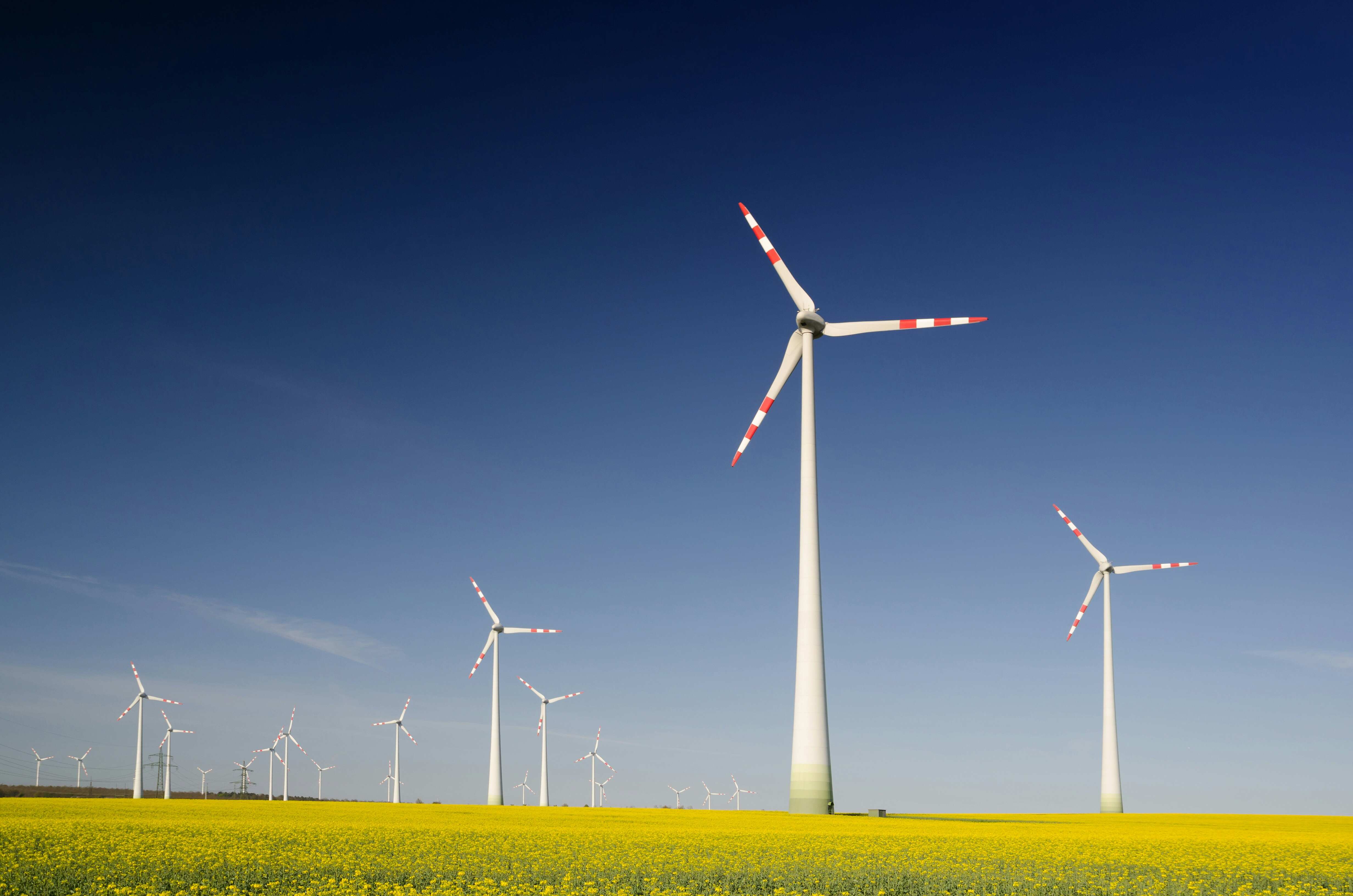 Wind energy is the kinetic energy from moving air harnessed by wind turbines. Wind energy is used in onshore and offshore wind farms and small-scale wind turbines.